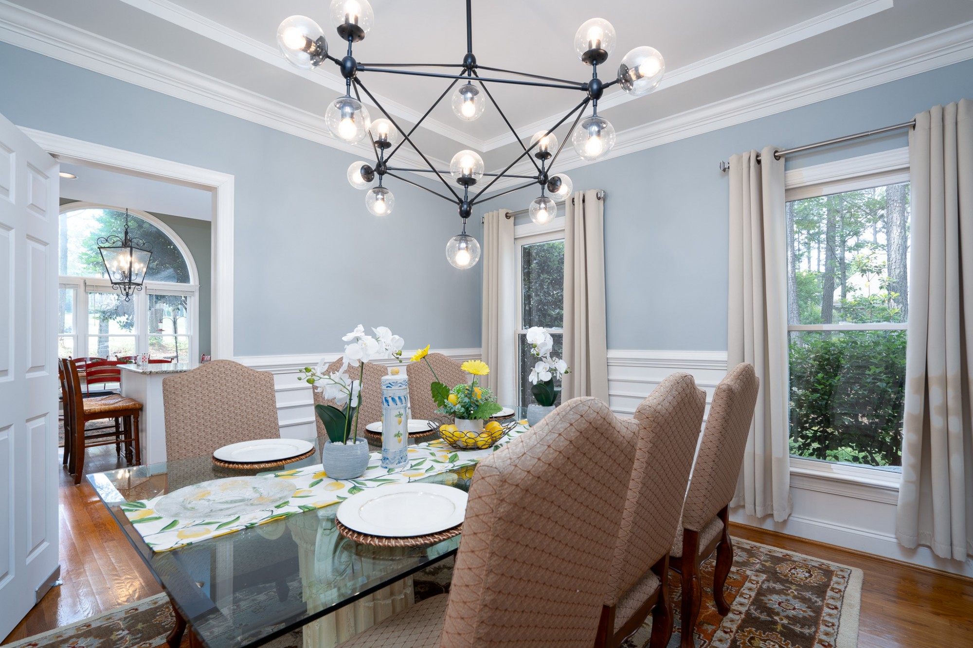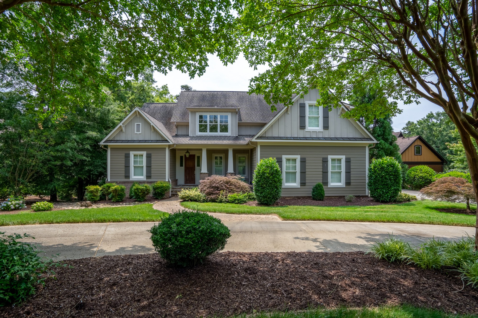 The charming front porch welcomes guests right away when they drive down the driveway from the private cul-de-sac. The home features a beautiful two-story Great Room and sunny breakfast nook off the kitchen. It also has a formal dining room and living room for hosting.